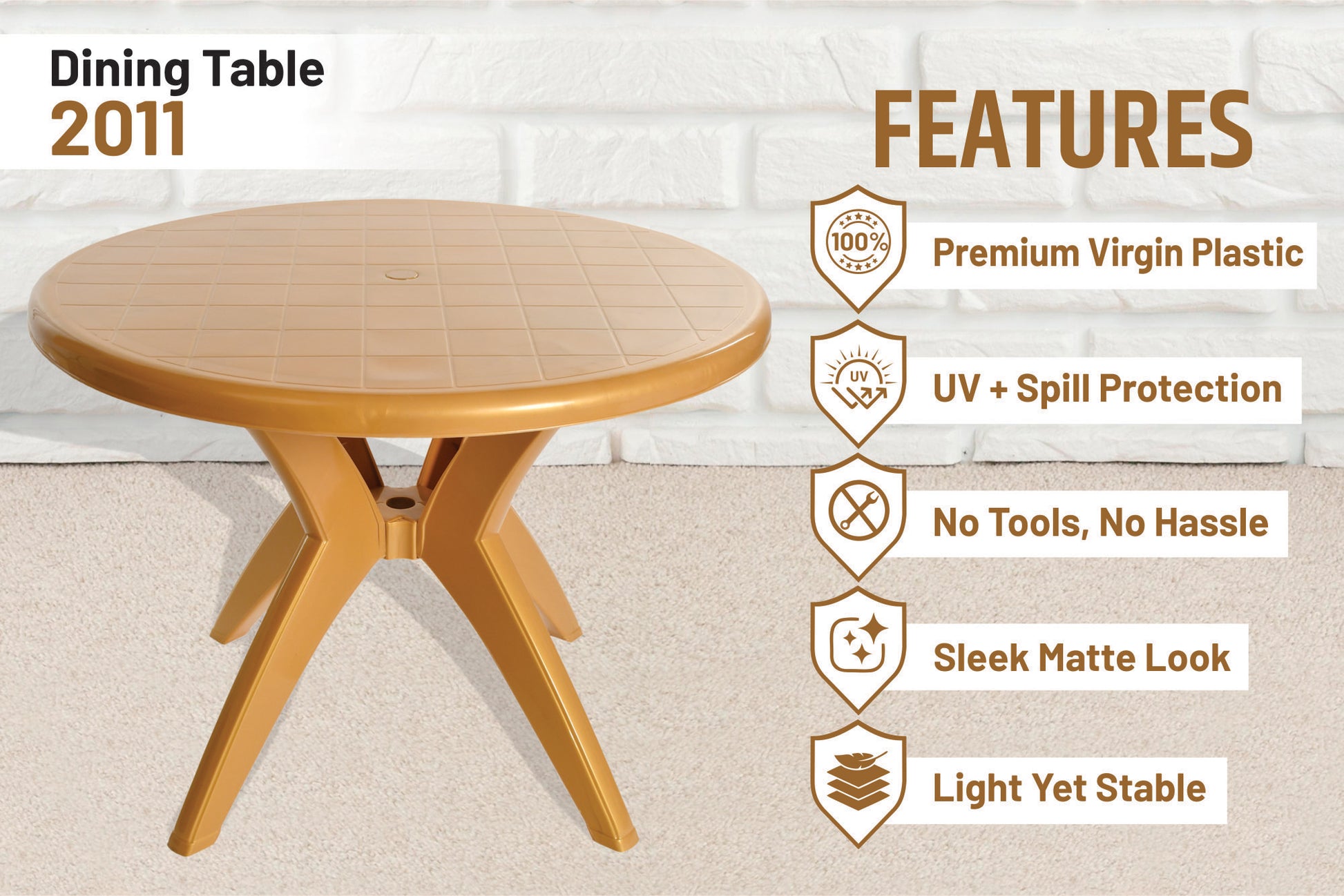 The Kisan 2011 is not just another plastic dining table; it is a smart investment for those who value style and durability. Unlike traditional wooden tables, it does not warp, crack, or require frequent polishing. Its lightweight nature makes it easy to shift around your home or commercial space without hassle. Plus, the UV-stabilized material ensures it retains its color and strength even when placed under the sun.