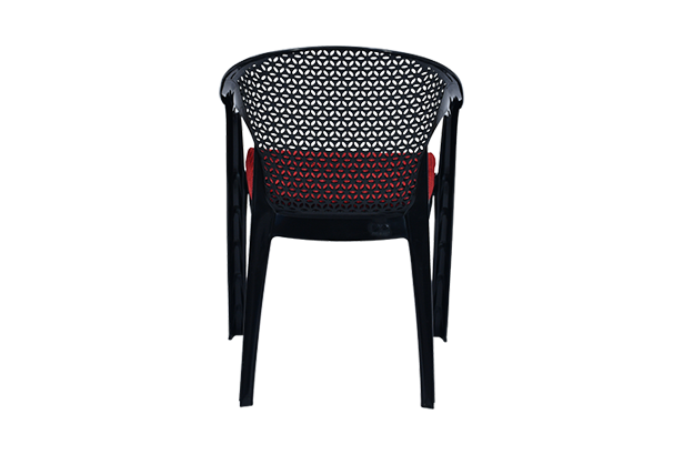 Experience the perfect blend of style, comfort, and strength with the Italica 5202 luxury chair, one of the most elegant additions to Italica’s sought-after Luxury series. Crafted entirely from 100% virgin plastic, this chair stands out with its sleek black finish, ultra-modern design, and exceptional durability. The 5202 model is India’s first fully ventilated stackable chair, combining premium aesthetics with unmatched practicality.