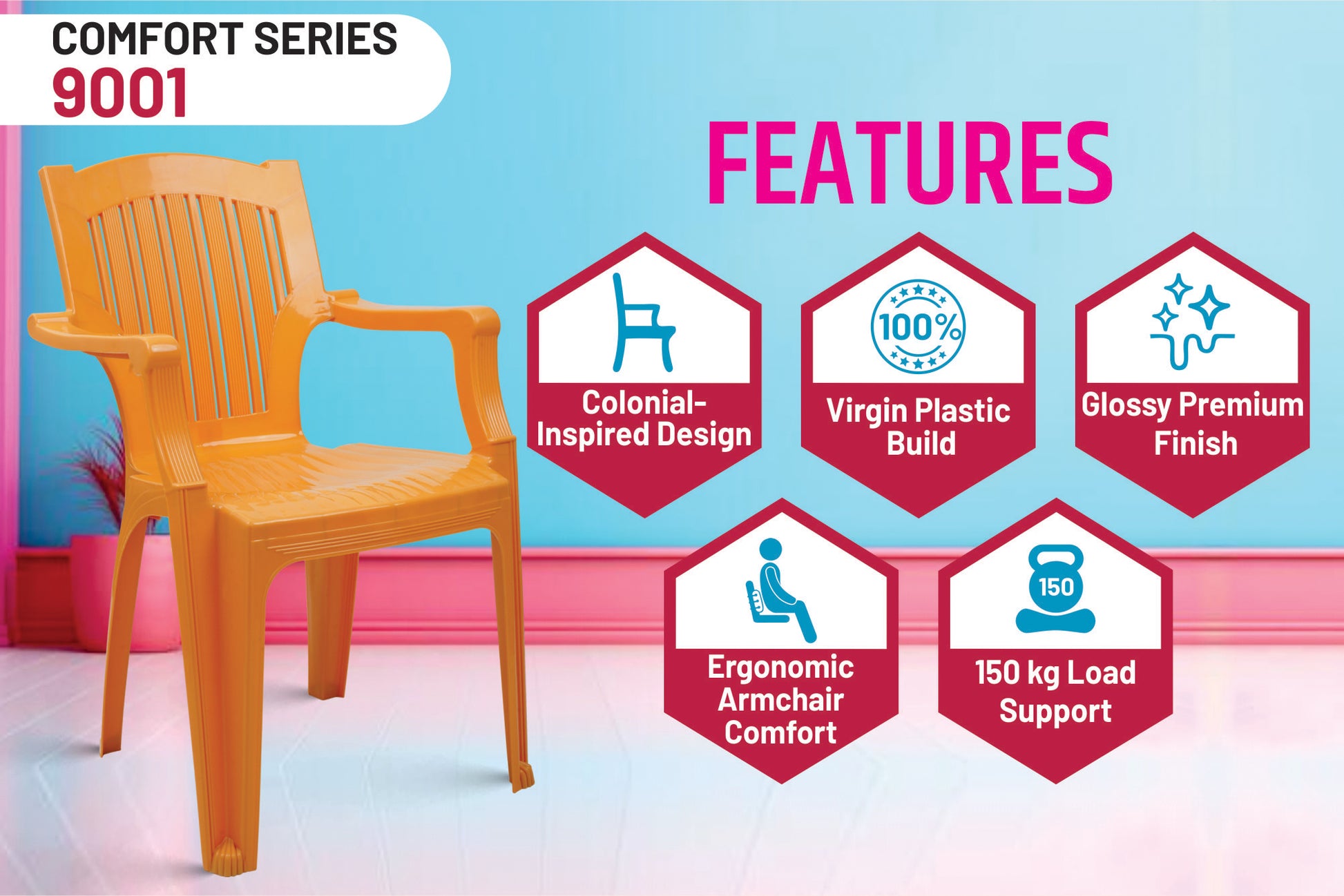 This plastic arm chair has been moulded into a luxurious colonial design that is perfect for adding that rustic look to your home. This plastic arm chair sure to level up the elegance and style of any indoor setting.