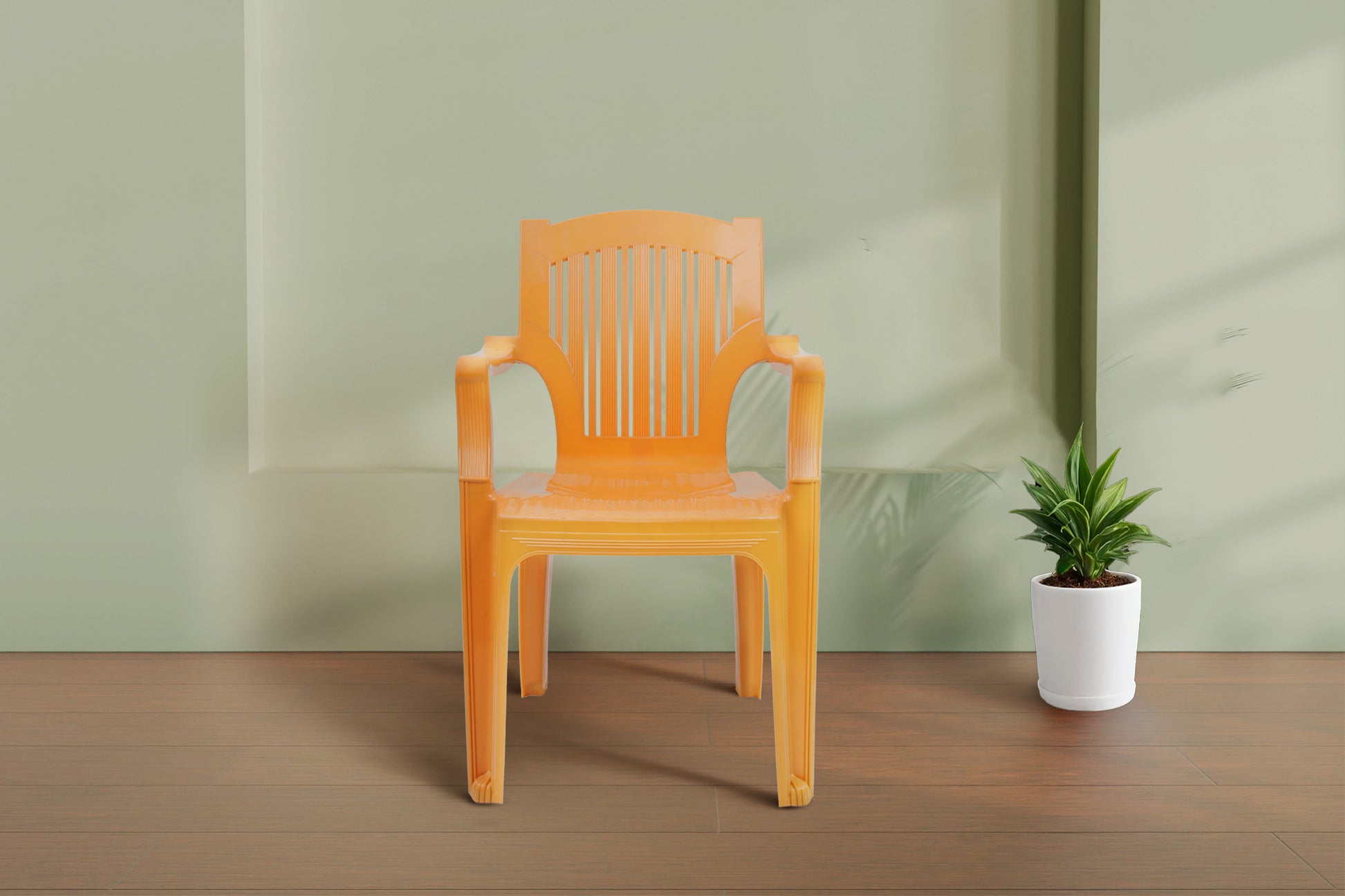 This plastic arm chair has been moulded into a luxurious colonial design that is perfect for adding that rustic look to your home. This plastic arm chair sure to level up the elegance and style of any indoor setting.
