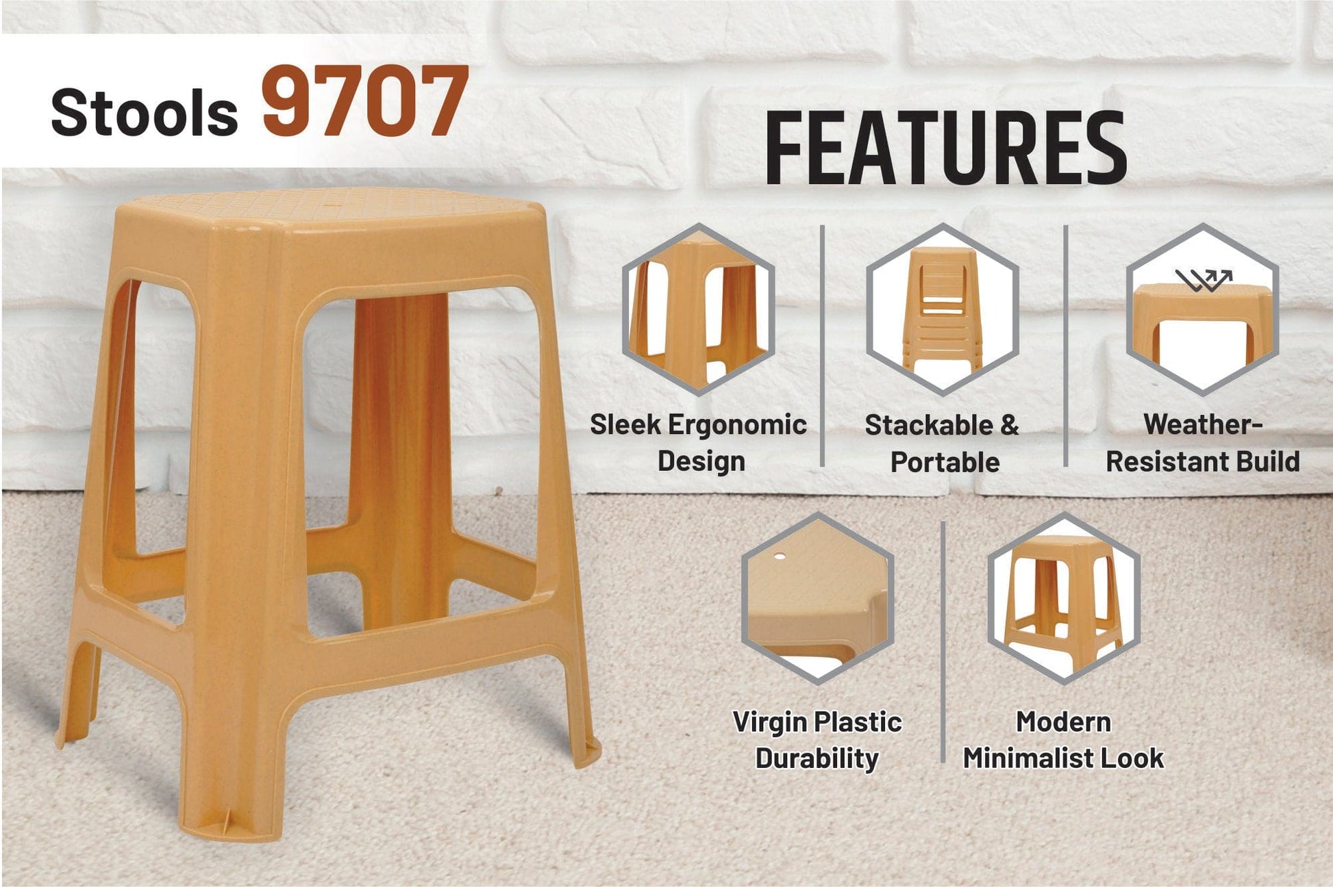 Unlike ordinary plastic stools, the Italica 9707 is built for longevity with weather-resistant, lightweight, and stackable features. Its contemporary aesthetic seamlessly fits into modern spaces, while its sturdy build ensures everyday reliability