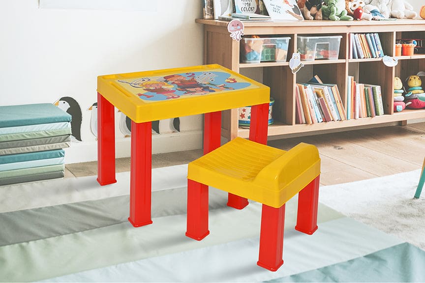 Introducing our Kids Study Set, a perfect blend of aesthetics, comfort, and durability designed to ignite your child's creativity and learning journey. Crafted in smart-looking, vibrant colors, this set features attractive cartoon characters on the tabletop, adding a playful touch to study time.